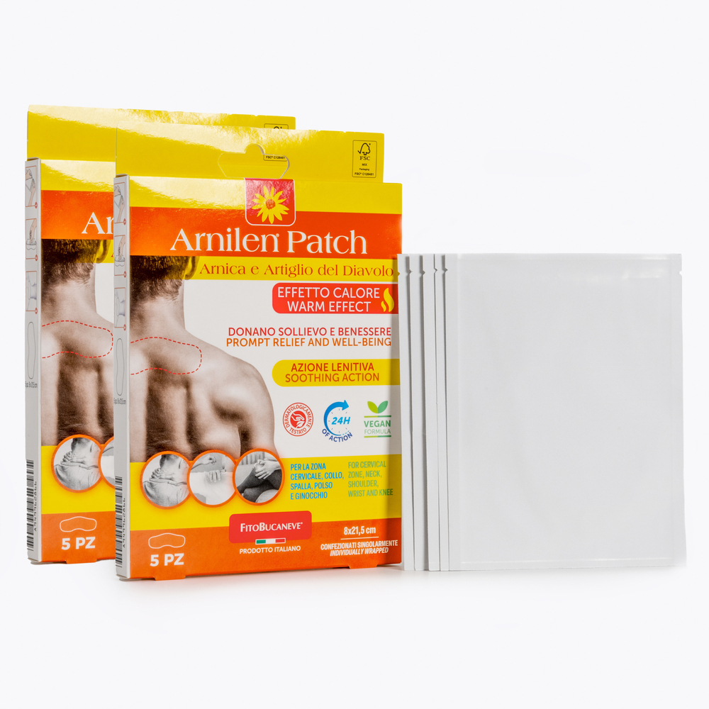 l’applicazione del cerotto (la sudorazione, causata soprattutto dall’attività sportiva, aumenta l’effetto riscaldante). L’effetto lenitivo del cerotto non dipende dall’intensità del riscaldamento. Gli effetti di Arnica, Artiglio del Diavolo e Salice dureranno 24 ore dopo la sua applicazione.